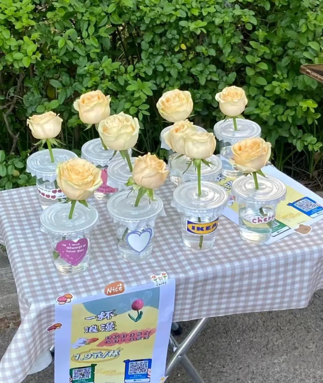 有人艳羡围墙外的春意盎然,也想将这份诗意送给有缘之人,于是选择将花店开进学校。三两人散步闲聊时走过卖花的小摊,挑一朵喜欢的便能开心好久。