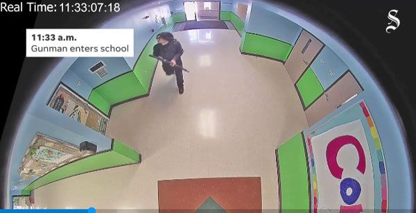 录像显示,枪手是18岁的萨尔瓦多·拉莫斯(Salvador Ramos),当日他在学校外用AR-15型步枪开了多枪,撞毁一辆卡车后穿过罗布小学的停车场,于上午11点33分进入大楼。