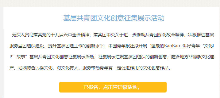 1、打开报名网址:http://news.cyol.com/gb/hdzt/vrb0PokZ/index.html,进入以下界面: