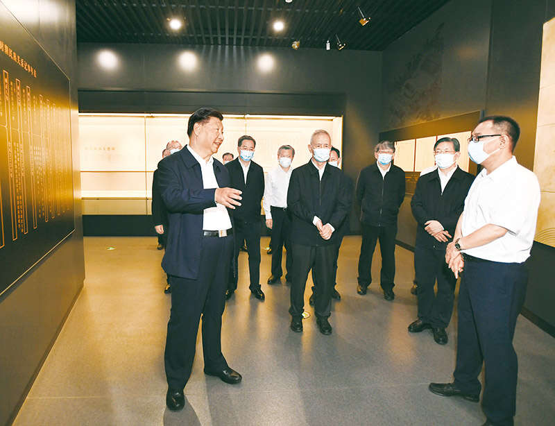 2021年8月23日至24日,中共中央总书记、国家主席、中央军委主席习近平在河北省承德市考察。这是24日上午,习近平在承德博物馆参观《望长城内外——清盛世民族团结实录》展览。 新华社记者 谢环驰/摄