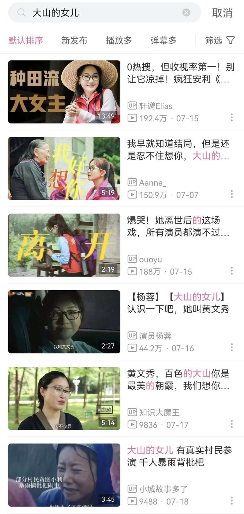 《大山的女儿》在B站有着不低的热度,许多网友自发剪辑视频推荐