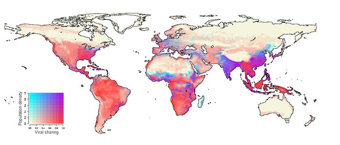 通过绘制这些跨物种传播事件可能发生的地理位置,阿尔伯里和卡尔森发现它们很可能集中在非洲和亚洲生物多样性高和人口稠密的地区,最有可能影响东南亚、东亚和中非部分地区的人类健康。