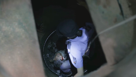 所长:那好,注意安全!(对其他民警)来,把绳子拉紧。新城你们让开,夏洁要下去了。