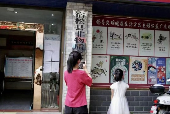 外国语学院“断丝弦锣鼓”实践队来到宿松县非物质文化展馆。校团委供图。