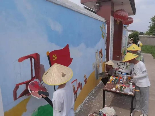 艺术与设计学院“美育浸润”暑期社会实践队开展墙体彩绘活动。校团委供图。