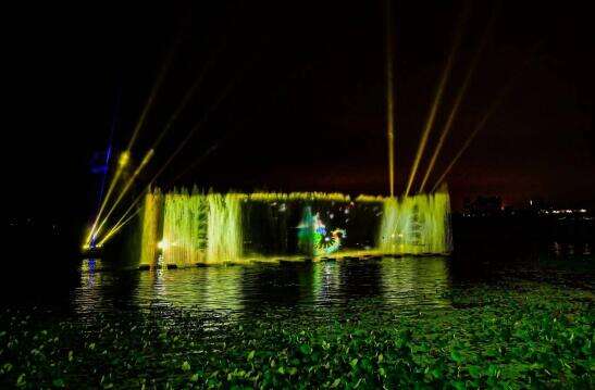 万亩龙湖上演七彩光影秀