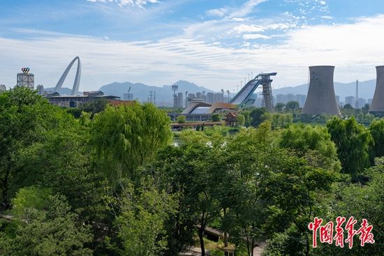 7月19日,北京首钢园区,从高空栈道远眺北京冬奥竞赛场馆之一的首钢大跳台。 中青报·中青网记者 李隽辉/摄