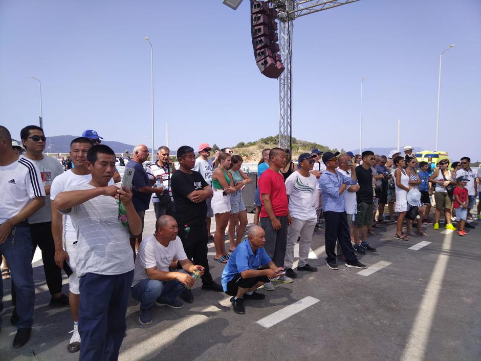 整个庆祝活动在当晚的通车仪式上达到高潮:盛大的烟火表演、率先驶上搭桥的克罗地亚国产电动超级跑车、浩浩荡荡的机车部队……