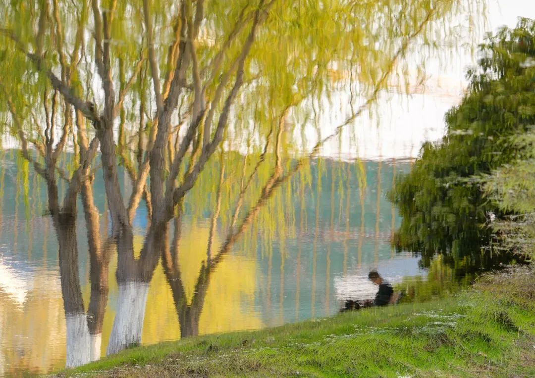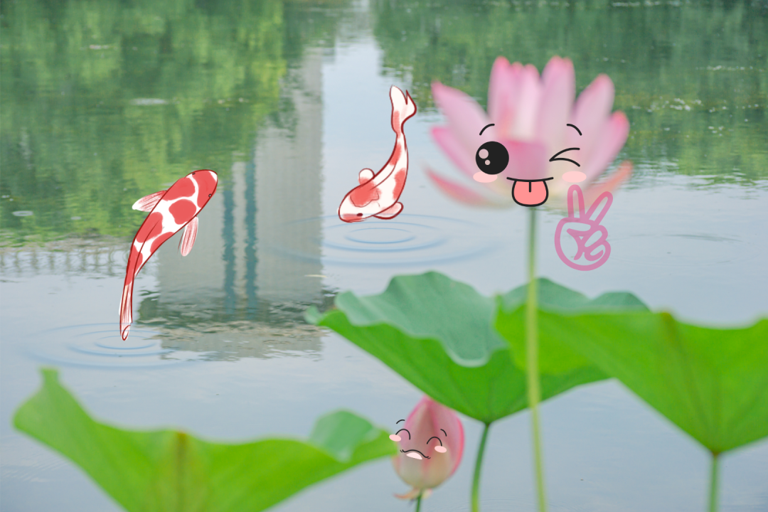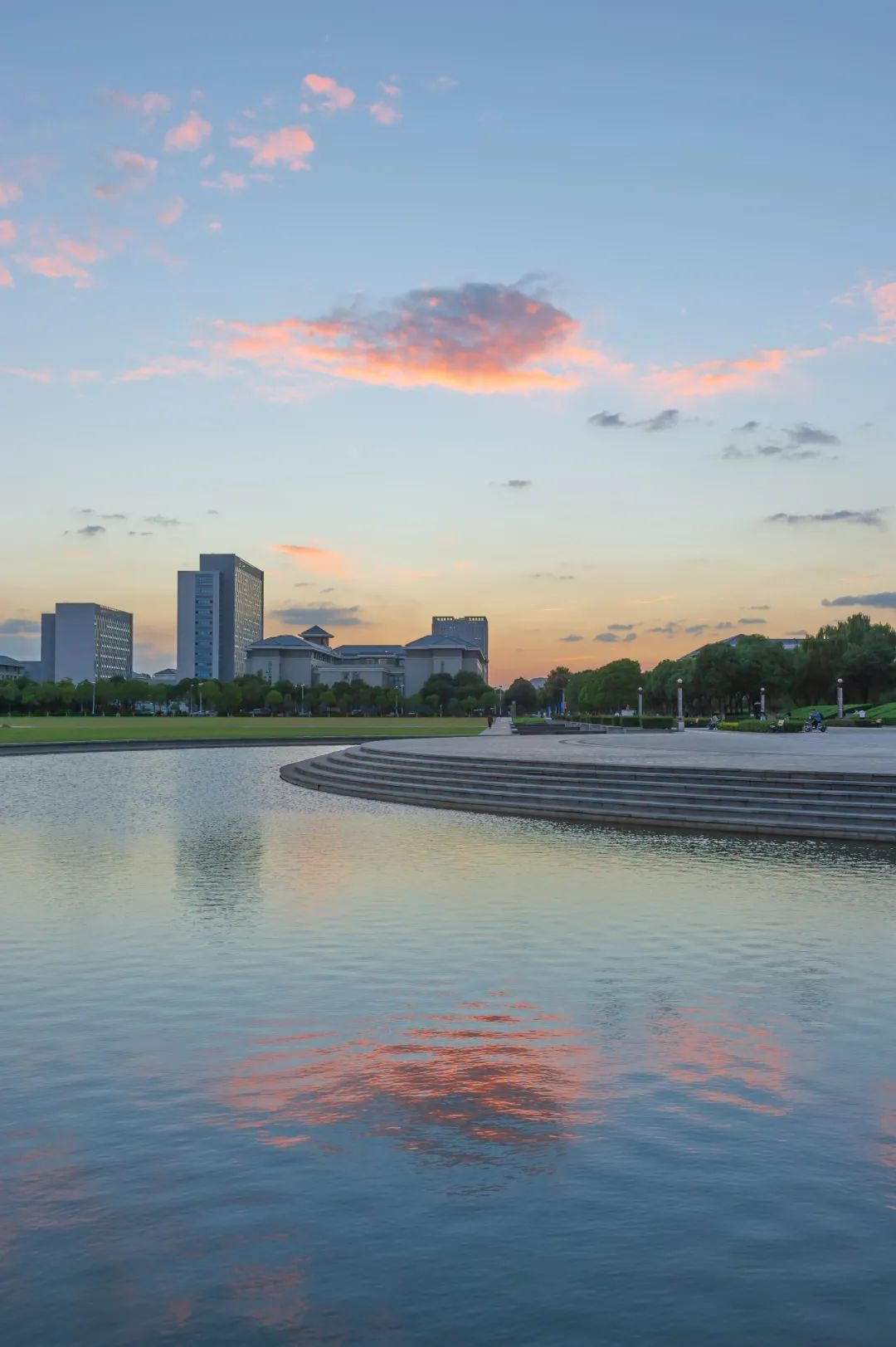 去图书馆门口的月牙湾边,坐看水里映照的天空,暑意消散、化作一抹胭脂红,栖上云的面颊、你的心 √