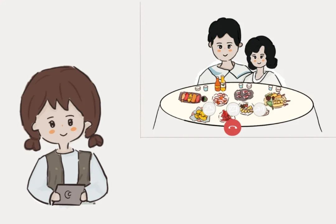 爸爸妈妈在闲暇之余在线上探望晓南,答应待小南研学结束归家以后做上满满一桌家常菜犒劳她 √