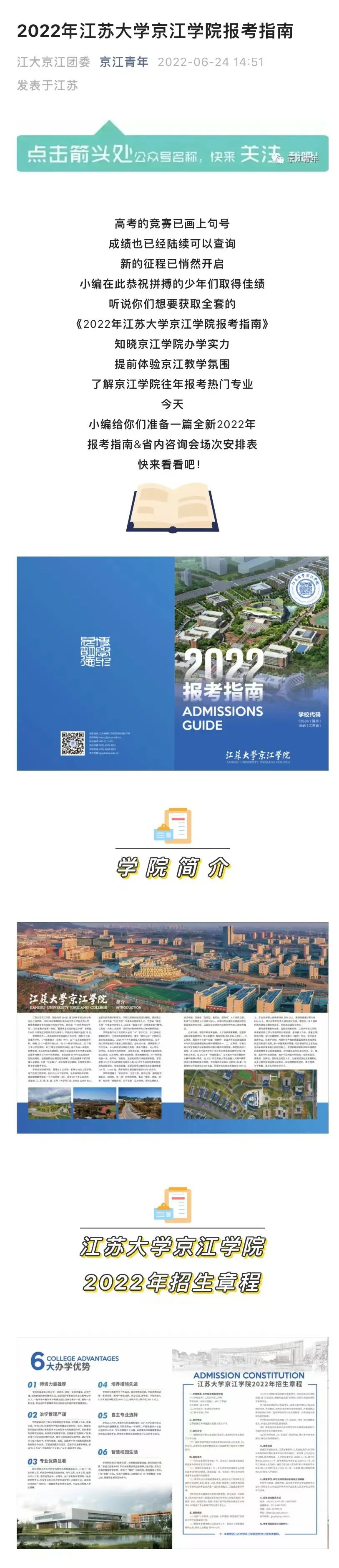 该篇文章获得阅读量排行TOP3。江苏大学京江学院发布2022年报考指南,对考生如何报考作了详细说明,就相关的问题作了具体解答。