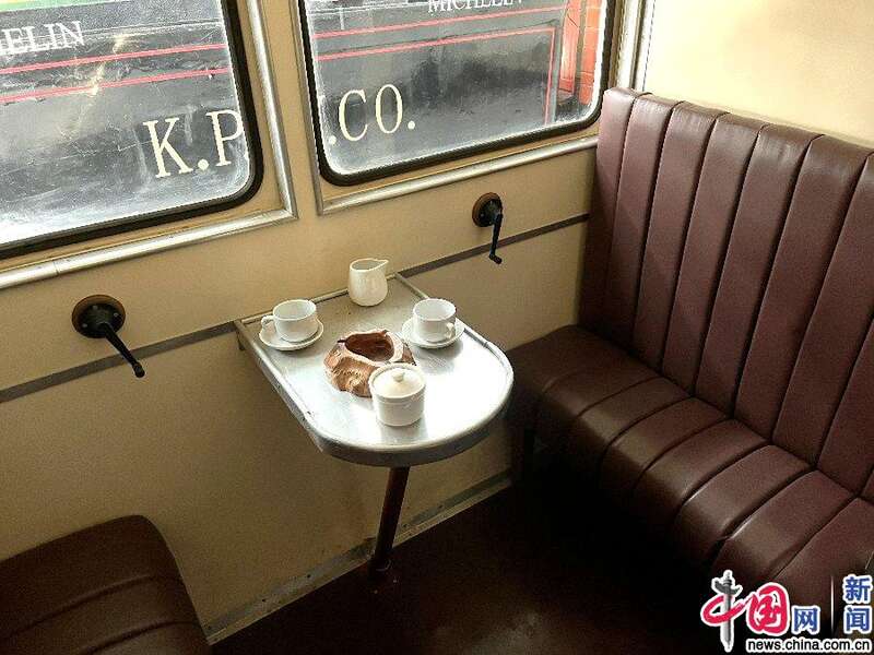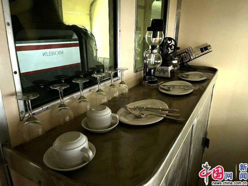 记者看到,这辆米其林列车配有真皮座椅和独立的卫生间及马桶,还配有浪漫风情的西餐吧,很难想象这是一辆百年前的列车。