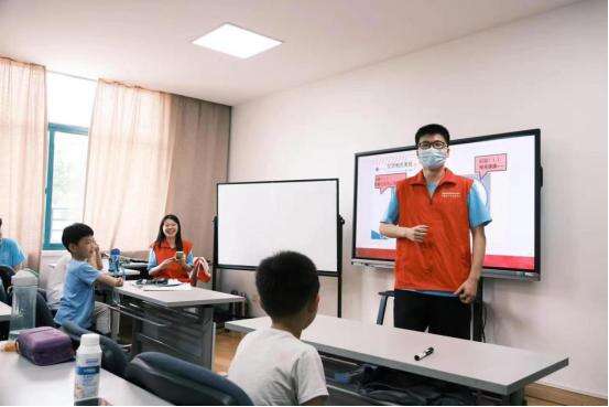 实践队队员在公益暑期托管班开展“电娃课堂”志愿服务。国网绍兴供电公司团委供图