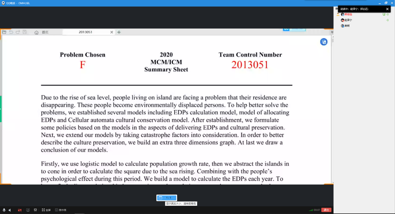 因为疫情的原因,团队三人一直线上共享桌面、同步数据资料,在数学建模中担任组长的郑志远说:“我觉得作为队长,你不一定是最强势的,但是你要会作为一个粘合剂,做好团队观点的融合。”因此虽然是线上,但是他们的效率并不低。