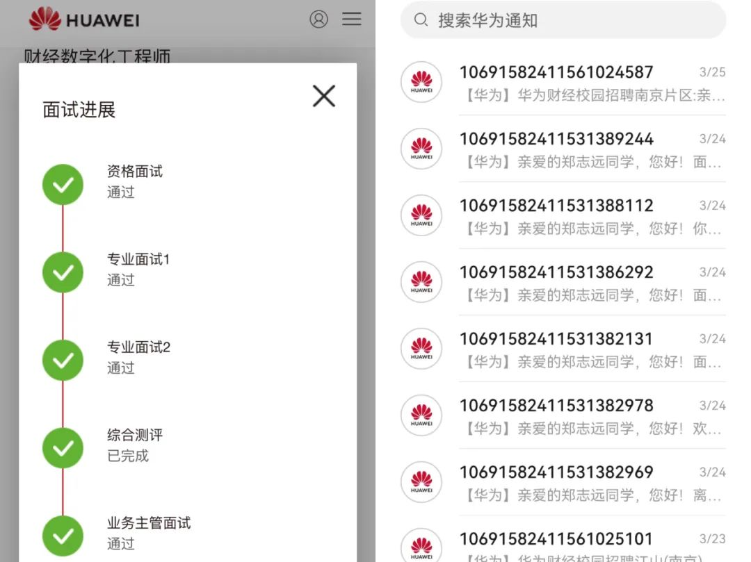 拿到安永咨询的offer以后,面对华为的众多大类方向,本就来自软件工程专业的他加上对数据科学的喜爱,选择了华为财经数字化方向。这个职位所涉及到的财务流程自动化、建立大数据中台、运用到的一些AI技术等正对上了郑志远兴趣。因为已经有了一个比较喜欢的offer,在面试华为时,郑志远的压力也小很多,心里也更加坦然。