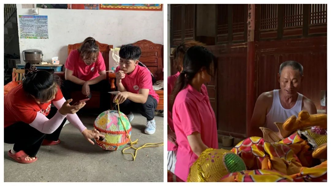 6月24日至7月1日期间,调研实践团的成员们分别去往敖城镇茅田新村、永阳镇东园村、敦厚镇圳头古村、永和镇白沙村调研茅田花灯、东园龙、板凳龙、三节龙、干麦船等非遗项目的传承谱系,当代传承人的传承事迹,项目的活动仪式、活动流程,活动的社会场域及其文化内涵,当代传承的方式等。