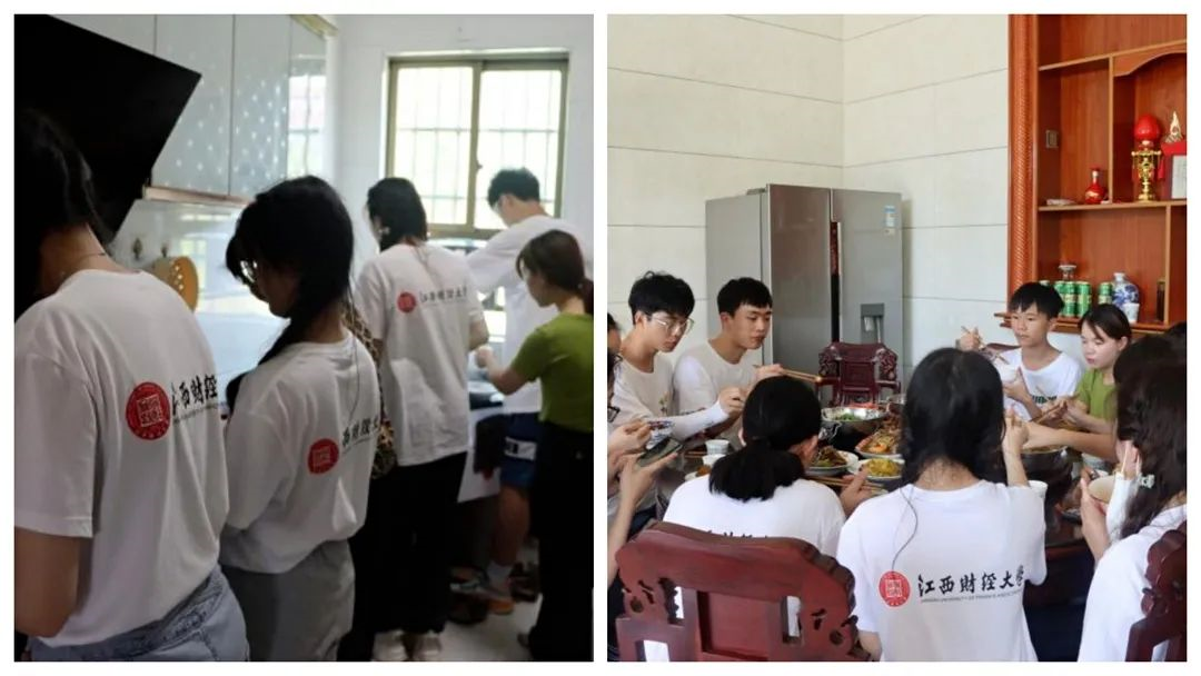 赶着趟儿,开始做饭! “语乡行”队的成员为了感谢农户的淳朴热情, 如唐代诗人王建笔下的新媳妇一般,实现了“‘一’日如厨下,洗手作羹汤”。 一行人都恨不得如哪吒般六臂,操作各类食材。 在生疏的手艺下, 各类菜肴也是像模像样,手上工作都逐渐熟稔。