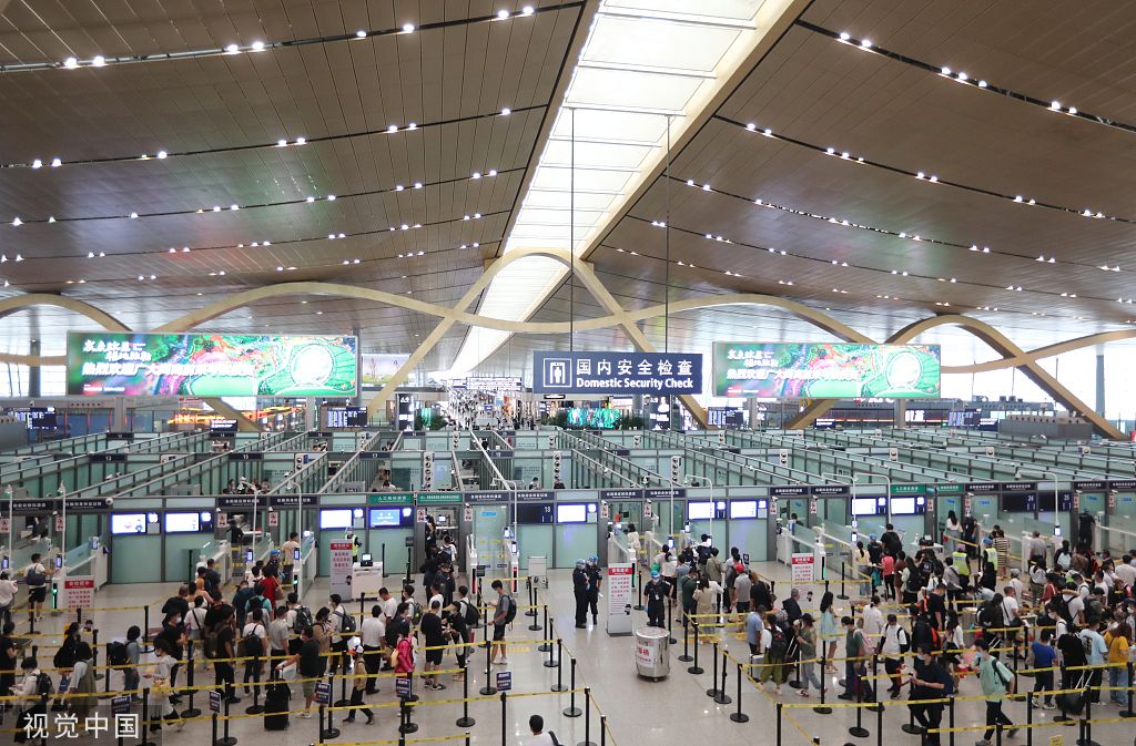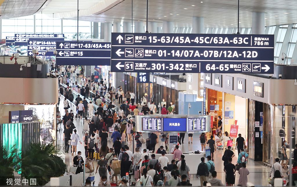 2022年7月31日,在昆明长水机场,出发大厅登机口通道的出港客流人潮涌动。