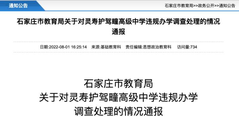 近日,灵寿护驾疃高级中学涉嫌违规办学的有关情况引发部分媒体和网民关注。市教育局立即会同灵寿县教育局进行了调查,现将调查处理情况通报如下。