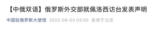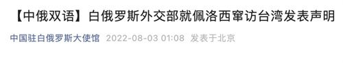 俄罗斯、白俄罗斯外交部就佩洛西访台发表声明,全文如下: