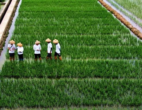 80后女博士周红英头顶烈日,穿着胶鞋、戴着草帽,时而弯腰,时而蹲下,在丰乐种业安徽肥西严店乡综合试验基地200亩试验田里,为水稻叶龄做识别记录。