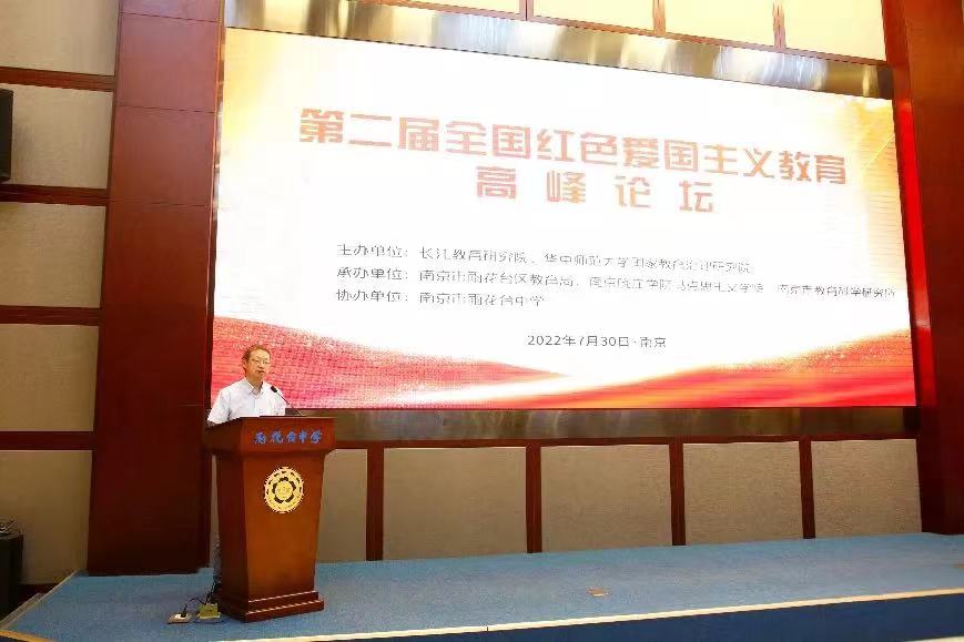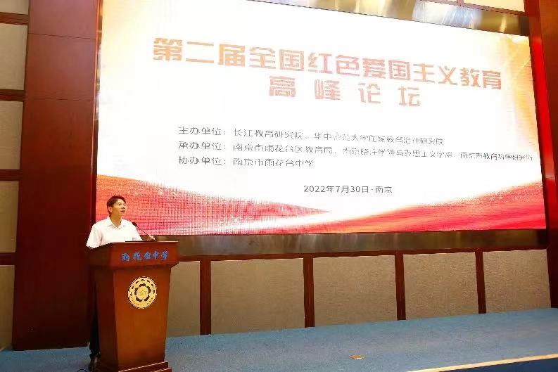 为贯彻落实习近平总书记关于思政课建设的系列重要讲话精神,深化新时代学校思想政治理论课改革创新,创新推进大中小幼思政课一体化建设,统筹推进大中小幼思政课课程内容建设,7月30日,由长江教育研究院、华中师范大学国家教育治理研究院主办,南京市雨花台区教育局、南京晓庄学院马克思主义学院、南京市教育科学研究所承办的“第二届全国红色爱国主义教育高峰论坛”在南京成功举行。中国教育学会副会长、长江教育研究院和华中师范大学国家教育治理研究院院长周洪宇,南京市雨花台区人民政府副区长郜叶红、南京市雨花台区教育局局长盛云生等领导出席,来自南京师范大学、复旦大学、华中师范大学、南京晓庄学院等高校的专家学者以及杭州、武汉、淮安、南京等地的校长们分享了大中小幼思政课一体化建设的研究动态与先进经验。