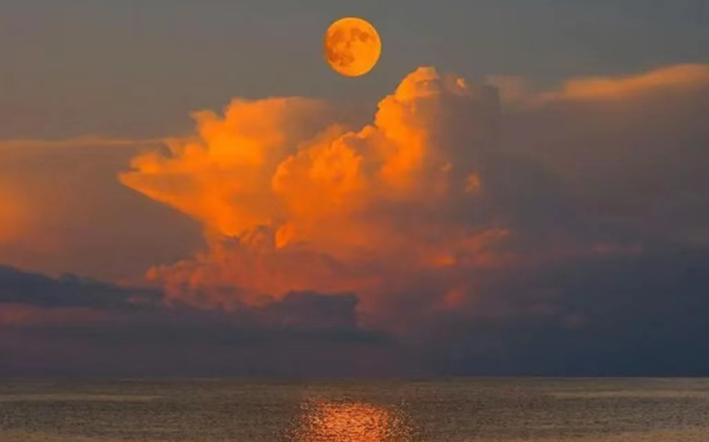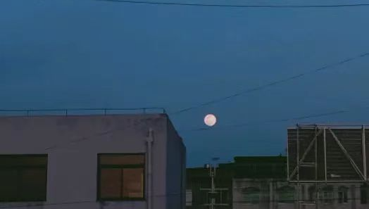 记忆又被摇晃的灯光拉了回来。不过这一次的灯光不再是黄色的。抬头,看着妈妈把最后一盘菜端上桌,窗外的天隅有幽蓝的空席,在隐去云朵和帆的地方,月亮早已挂起。