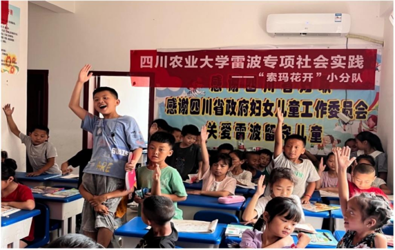 “向阳花·渔樵耕读”团队赴雷波县汶水村为当地100多名儿童开展为期12天的爱心支教活动。期间,团队成员传承强农兴农基因,结合学校特色,带来了主题为“耕植农业基因”的课程,向孩子们解读农耕的意义,将农业与计算机、智慧农业等新农业知识和学科交叉的思路分享给了小朋友。“为什么蔬菜不在地里?拖拉机怎么自己在走,司机不见了!”孩子们急切地问到,志愿者们一一解答,激发了小朋友们浓厚的兴趣。