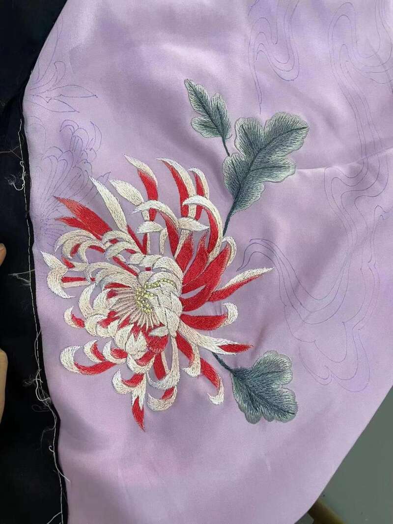 横店绣工能接受稀奇古怪的要求,她们和影视剧打交道多,能完成各种非传统的要求。她们擅长机绣,制作速度快很多,但少了手工感。我们在做《重逢<牡丹亭>》时,会在机绣里加上传统的盘金绣、打籽绣,增加人文气息。