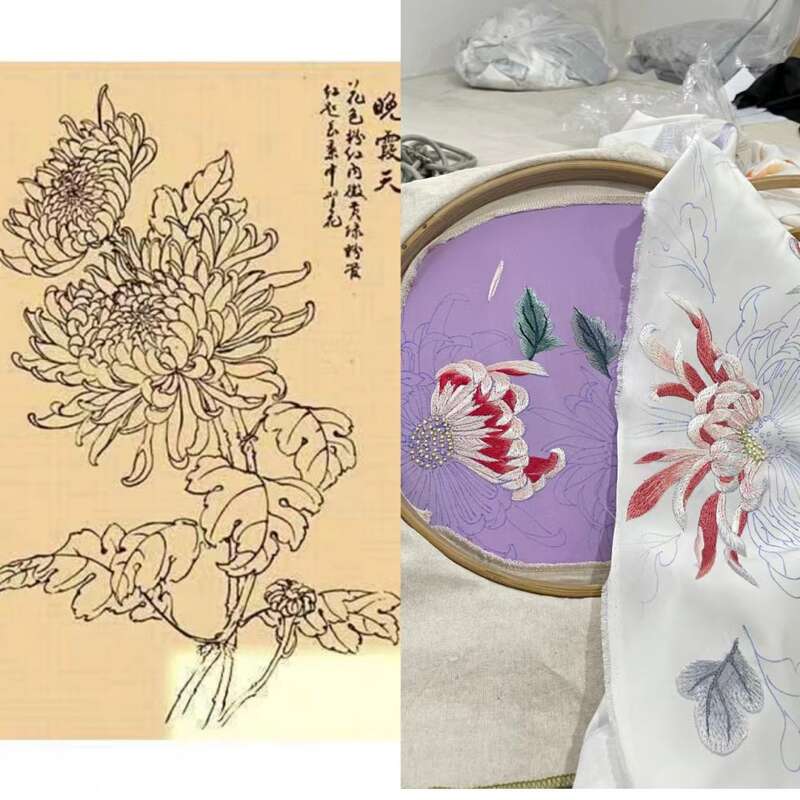 赖宣吾:苏州绣工习惯饱满而对比鲜明的颜色。但我要求刺绣少用对比色,多用顺色,制造柔和的颜色,淡雅灵动。因此我们天天在“拔河”。