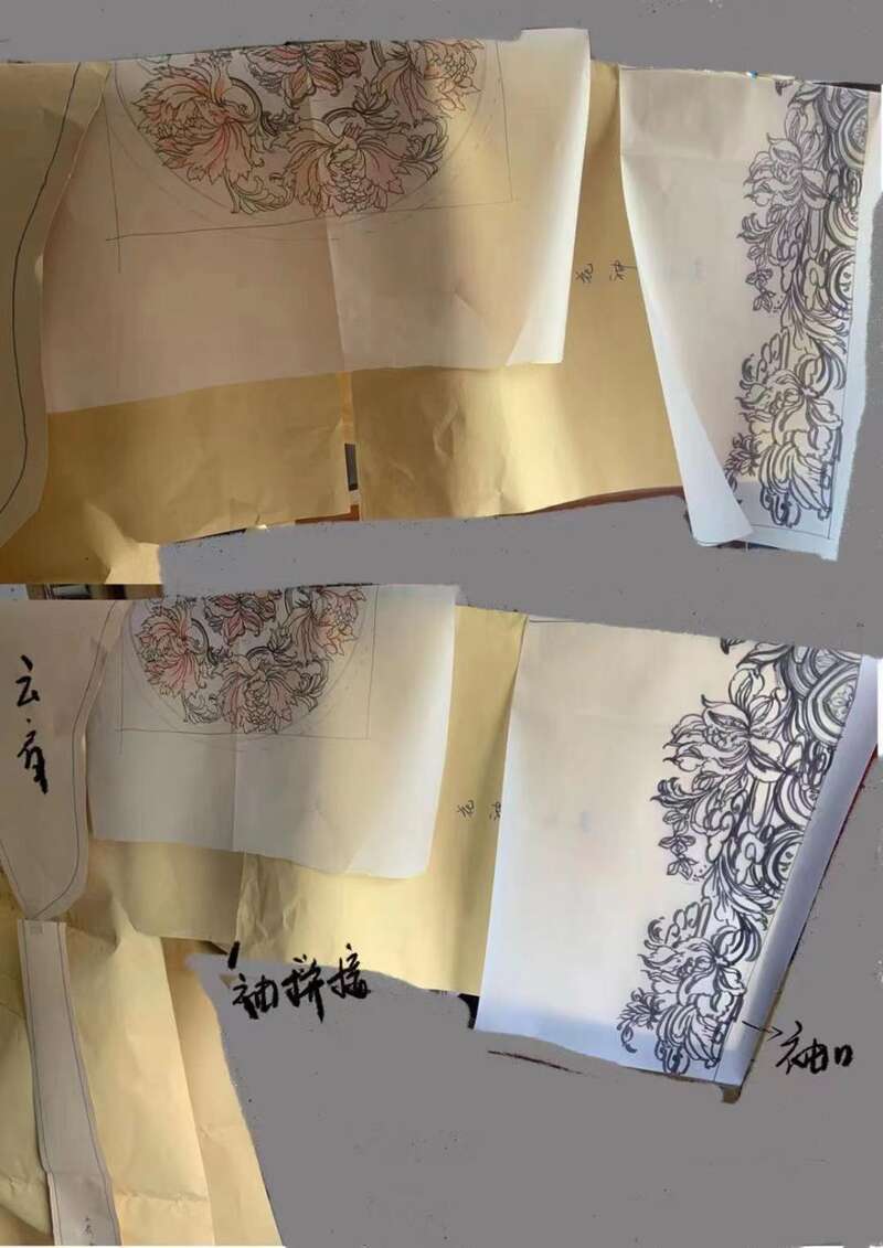 赖宣吾:古装戏服制作相当繁琐,设计师先画手稿,然后是白描,接着画在硫酸纸上,拓印到布上打样,做成绣片,配色和花纹经过好几轮修改、确认后才开始正式制作。