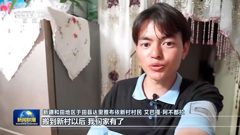 新疆和田地区于田县达里雅布依新村村民 艾巴提·阿不都拉:搬到新村以后,我们家有了冰箱、电视机、茶几、沙发等家电家具,我们一家人很开心,很幸福。