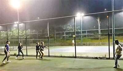灯光映衬之下,四处奔跑跳跃的年轻身影清晰可辨,他们的笑声飘荡在夜色笼罩的校园里,别有一番景致。