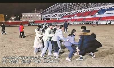 哈尔滨工业大学的同学们在玩“老鹰抓小鸡”