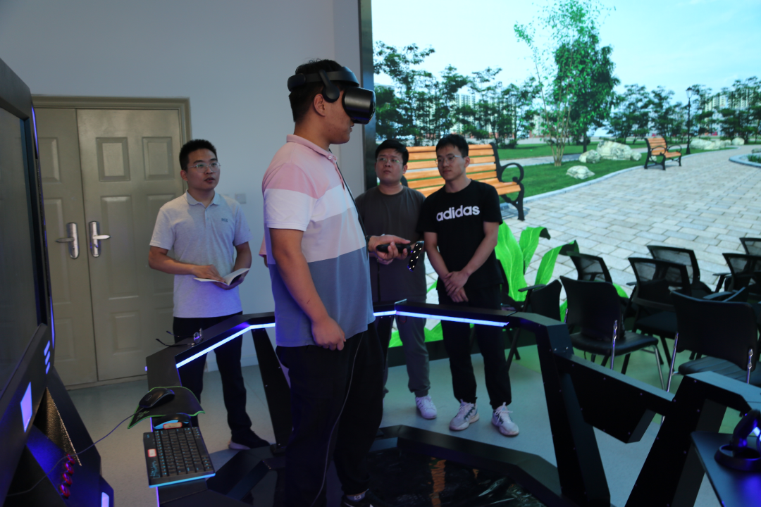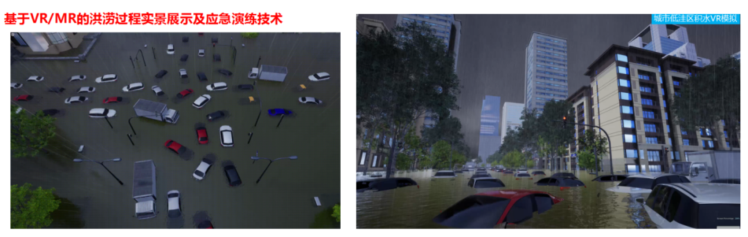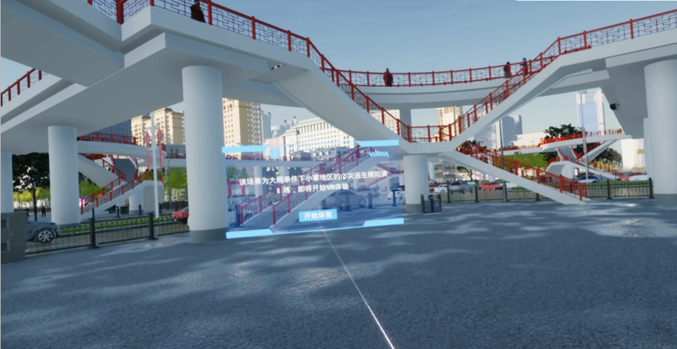 “快跑快跑,积水危险,请体验者根据路线指引就近向高处撤离。”这是我校水模拟及灾害管理团队依据虚拟现实技术构建的场景。
