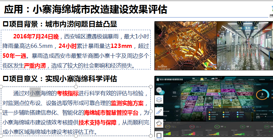 “目前,我们正参与西北地区的几项建设项目,在西安域内,我们的技术也参与到小寨片区的市政建设工程中。以前每次下暴雨,小寨都可能存在局部积水造成的交通堵塞问题,但当下这个问题已经基本解决。”凭借着洪涝灾害防控关键技术,侯精明教授及其团队已经助力了包括西咸新区沣西新城、西咸新区秦汉新城、西安小寨区域、宁夏固原等不少地区的城市内涝治理工程项目实施或预警和排水防涝管理平台搭建。