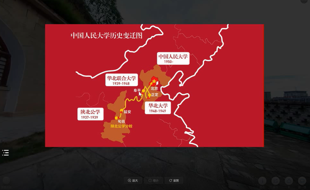 为深入挖掘研究光荣校史蕴含的精神养分,通过校史讲好人大故事、坚定人大理想,构建人大的精神家园,中国人民大学博物馆运用技术手段创新观展模式,在云端上线陕北公学旧址VR展。