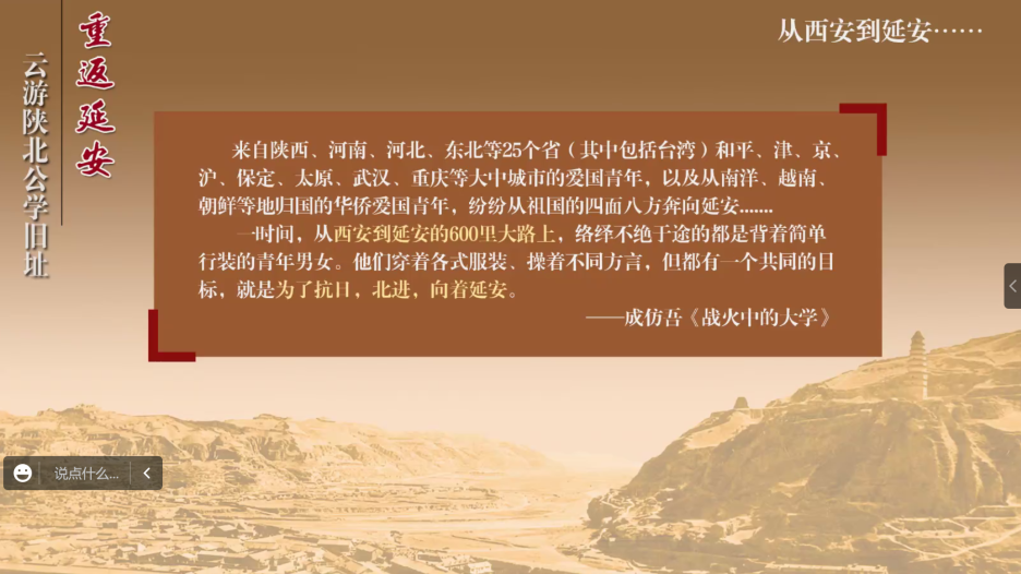 回顾陕北公学的历史轨迹,深感在疫情期间能以这种历史感与时代感相结合的方式学习党史校史,是极为深刻的教育体验。