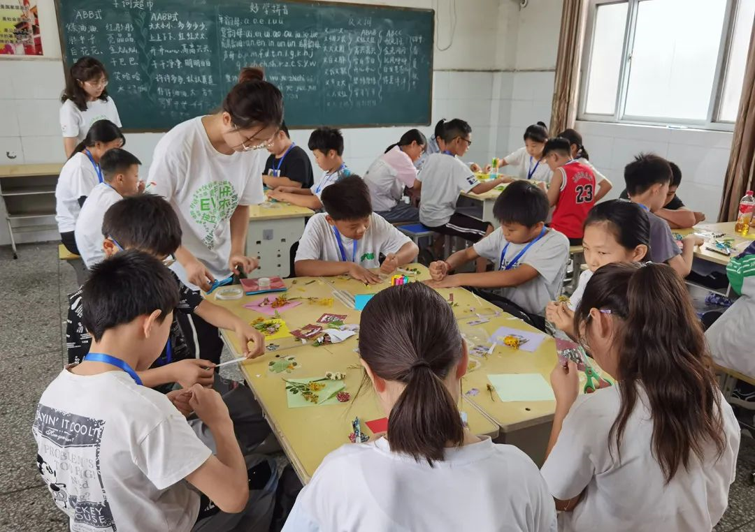 大学生志愿者为果乐小学的孩子们开设了绘画、手工、音乐、科学等课程,还举办了趣味运动会,在快乐学习中培养孩子们独立、自信、担当的品质,陪伴他们度过一个充实的暑假。