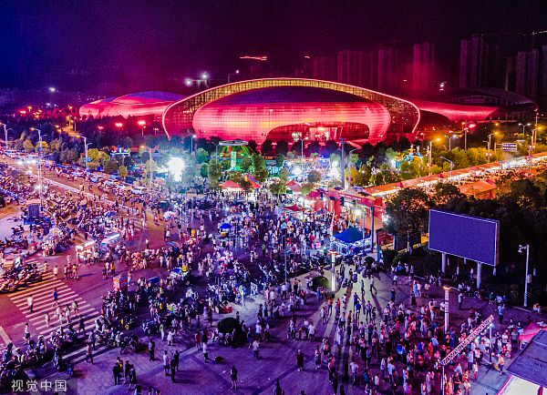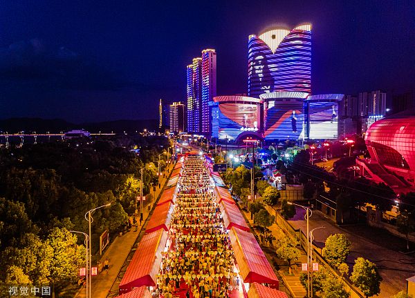 2022年8月14日,江西赣州,于都县美食文化节游人如织。