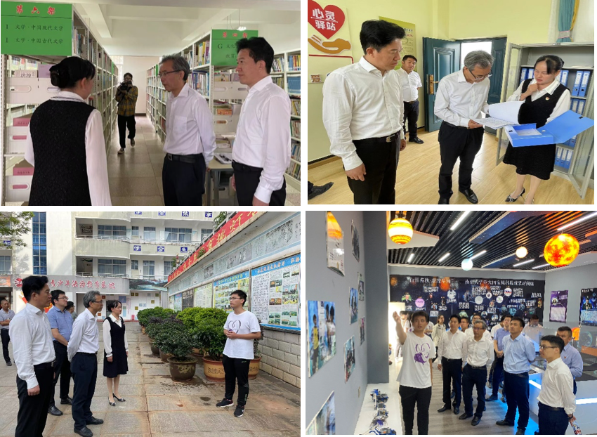 谈哲敏赴双柏一中调研教育帮扶情况,参观由我校捐建的“蓝鲸筑梦”书屋、“南与山南”心理健康中心和“百廿春秋·璀璨星河”科技馆,听取了我校定点帮扶前方工作小组的教育帮扶专题汇报。