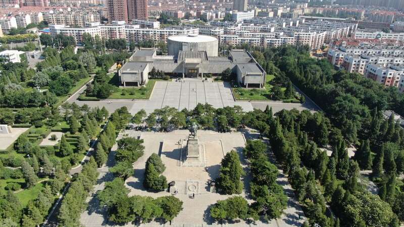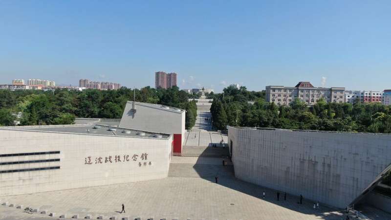 ↑辽沈战役纪念馆正门(2022年8月17日摄,无人机照片)。