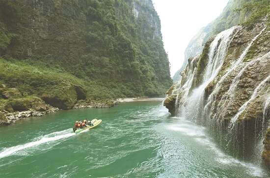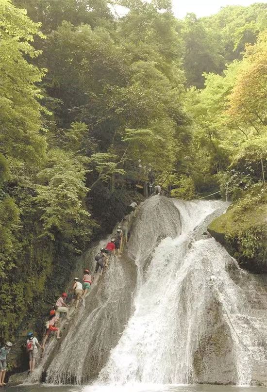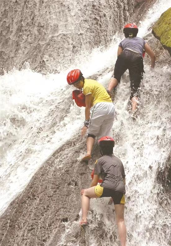 旅游者参加溯溪活动要由专业人士带领 图/新华社
