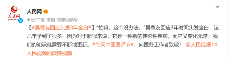 吴尊友回应3年时间头发全白: