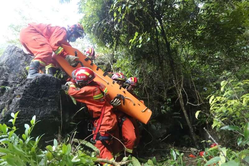 18日12时58分,南宁消防接到报警称:当地一个天坑里有3人被困,情况十分紧急,请求救助。
