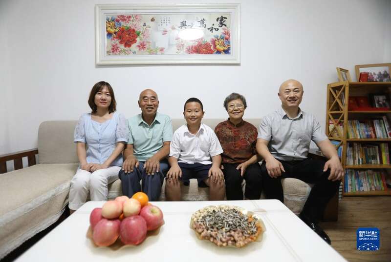这是牡丹社区居民李水(左二)一家合影。新华社记者 王乙杰 摄