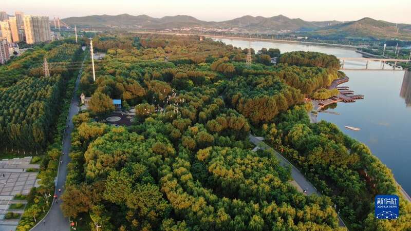 锦州东湖森林公园景色(无人机照片)。新华社记者 杨青 摄