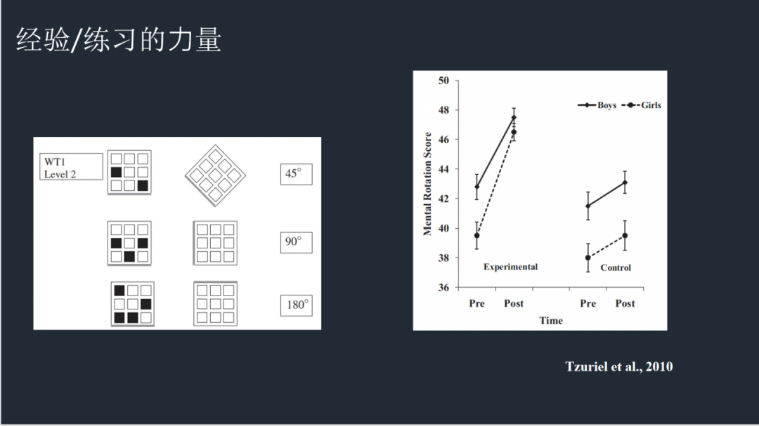 研究中,科学家随机抽取一位男性和一位女性,结果显示男性有65.7%的概率比女性的心理旋转能力强,但这并不能证明所有男性在心里旋转能力上一定强于所有女性,更何况这已经是男女在认知能力上出现最大差异的模块。