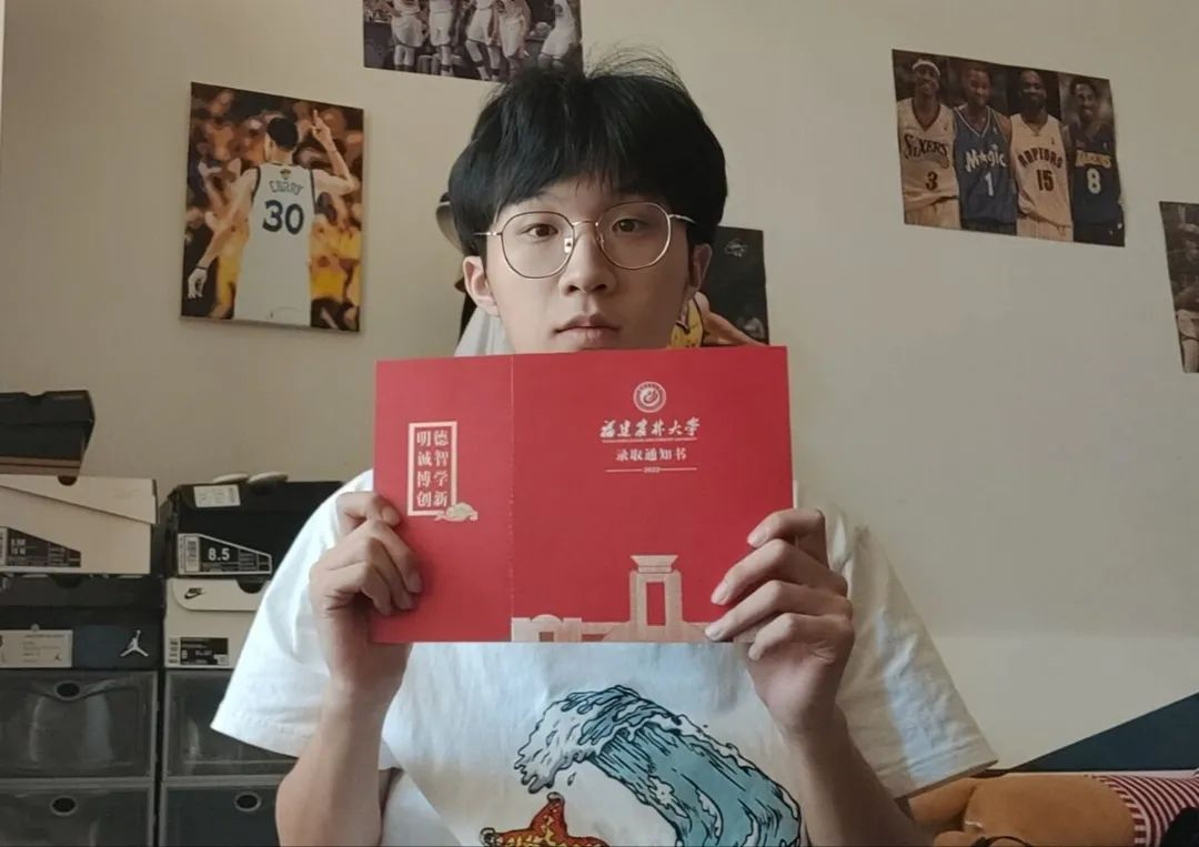 选择农林大的原因超级多——雄厚的人才培养实力、被誉为最美大学之一的网红校园环境、有名的农大蜂蜜、秀丽的中华园以及福州独特的地域文化……这些都让我心生向往。拆录取通知书的时候正在和朋友们视频通话,心情十分激动!看到三年来的心血结成的果实,忍不住想攥在手里,迫不及待打开它,一探究竟。爸爸和我就像小孩子般抢着看录取通知书,妈妈也高兴地马上把我的好消息分享到朋友圈。每一瞬间对我来说都弥足珍贵,感谢陪伴在自己身边的人,也感谢自己能坚持下来。