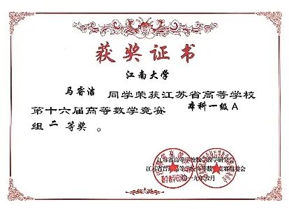 初尝竞赛甜头的她正式踏上了学科竞赛之路。数学建模校赛二等奖、高等数学竞赛省二等奖、全国大学生数学建模大赛依旧是二等奖,在别人看来或许已经足够优秀的成绩,却让马睿洁感到再一次陷入了“2”的循环。“2”到“1”的故事,或许并不被很多人感同身受,却仍是围绕她整个求学生涯的困境。